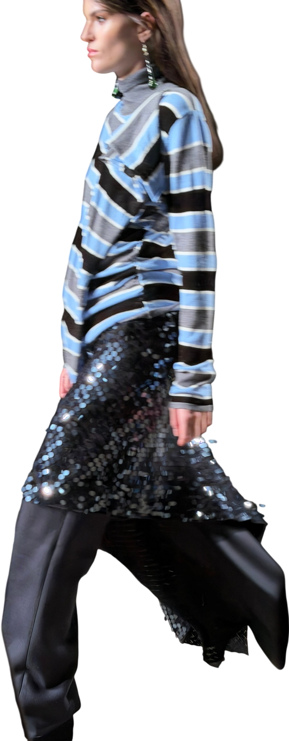 If you're not already familiar with Zankov, take note. He is the master of stripes a sequins -- a combo I can never get enough of. Picture below from his Fall '26 runway show.